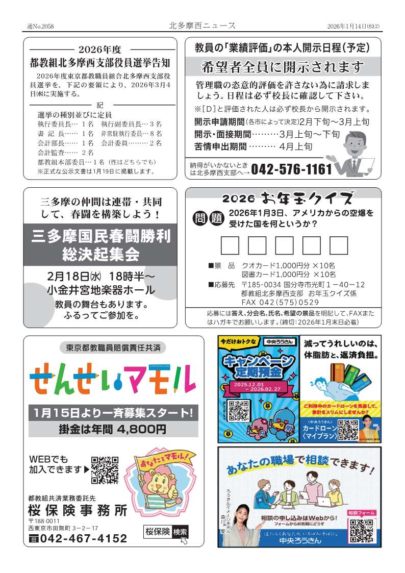東京都教職員組合北多摩西支部のホームページへようこそ。